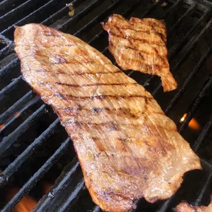 a steak on a grill