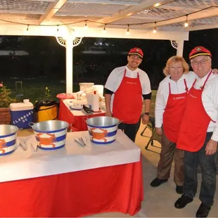 I have NEVER had so much fun at my own party! It is almost like a show, what they do. It's gorgeous to watch them in their red aprons and gloves, pouring out their big tin buckets of steaming crab claws and clams and red lobstertails. Everyone thought it just created drama- most unique, beautiful dinner. The crusty bread on the table, the melted butter and sauces...it was delicious. It was total fun. The staff was so accommodating, so prepared ahead of time; bartending for a crowd is hard messy work and they pulled it off with polish and grace. They will do anything and everything to make the experience even more than expected. Thanks Debra, thanks Steve. You and your people were amazing.