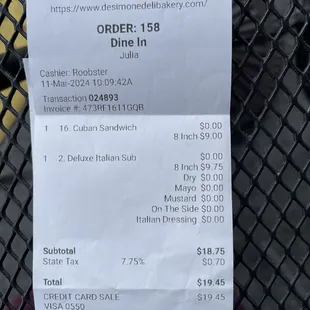 **March 2024: Weekday Afternoon Visit**I've visited DeSimones on 4 or 5 occasions for both take-out and catering and really enjoyed their sandos. I personally always call in my order and pick the Italian 8 inch. When I come in I'm always greeted with a smile and friendly service. The bread on the sando is so good and all the ingredients inside are always perfectly balanced. On one of my catering orders I ordered a 40 assorted sandwich tray and everyone enjoyed them. I'd be happy to order them for future parties as well.