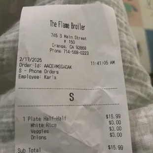 Nothing worse that paying almost $20 for a meal for it to be Completely wrong. I made a phone order for a Chicken plate with All rice and some veggies and I said to (Karla according to the receipt) ABSOLUTELY NOTHING ELSE on the plate. What i got was A half & half plate with rice and a few veggies with a salad n orange. I double checked with her the order, and she literally repeated chicken plate with rice and veggies. Nothing else. Very disappointing.