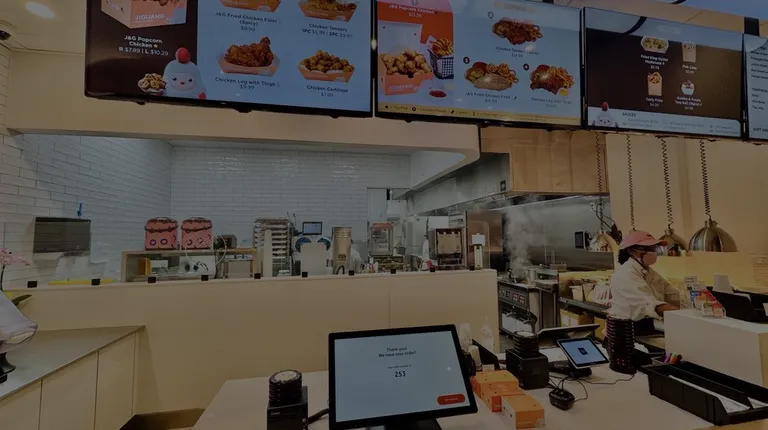 Late weekend night at the mall, and a yummy fried chicken smell is wafting over to us hungry walkers. It's a simple casual fast-dining spot with kiosk ordering. I ordered a large popcorn chicken which didn't have extra wait time for preparation, added J&G sauce ($1) in addition the the one allotted which I chose honey mustard. The chicken is good, even more tasty with the offered chili powder. Unfortunately, the J&G sauce we paid for was a half-filled plastic container- not really enough to justify spending extra. Honey mustard was okay. Additionally, the largest popcorn chicken box was not even filled all the way and the box looks pret-ty dang small for $11, thus I'm docking a couple stars. Our friends got combos with fries or a chicken sandwich and they were satisfied. Perhaps those will leave you less hungry. I love Taiwanese popcorn chicken and would order the fillet or something classic next time, but sadly this chain location under-delivered on value and doesn't make up for it on taste. Also, if you like really crispy crunchy, you'll have more luck at a different style restaurant. I would try J&G again if there's no similar competing options.