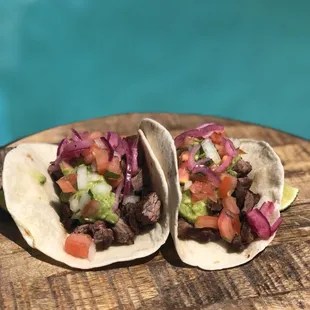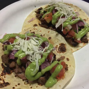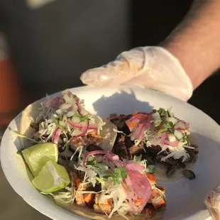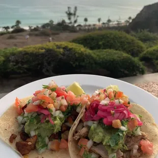 The tacos were absolutely delicious!! The garnishes..pickled onions, fresh guacamole, salsas were a cherry on top. The refried beans were so yummy..the shredded pork (cochinita pibil) was so authentic and delicious!