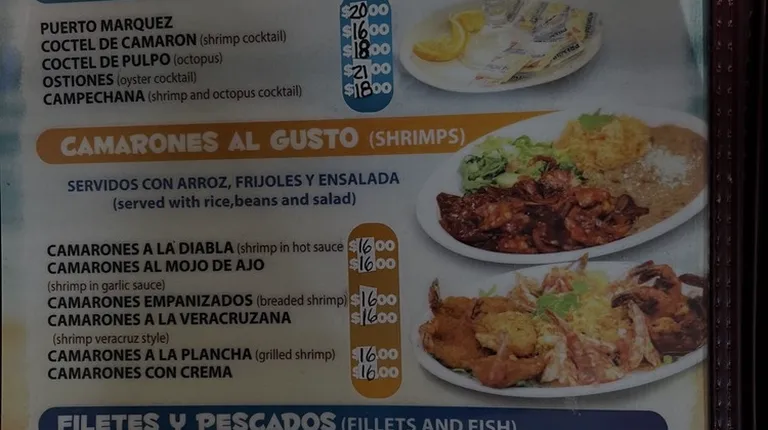 I ordered the chicken mole plate and my friend had the shrimps Diablo, those were so good. This is a small time Mariscos place, but if you go to Blarney Stone bar next door, when you order food from the Mariscos restaurant, the server lady will bring your food order to your bar, with utensils and napkins too. That is another good benefit because the bar doesn't have any food, but it allows outdoor food. They have beer buckets for reasonable price. I also included the updated menu pictures and prices and the prices went up because of inflation. The food is still good. Check it out!