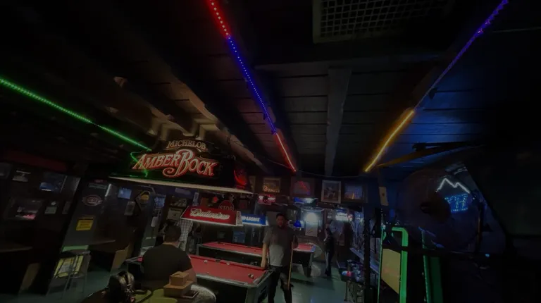 pool tables and neon signs