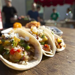 Pretty good tacos. A cute little stand with outdoor seating in the hub of Laguna. The white fish taco was really great! The Al pastor was just ok.