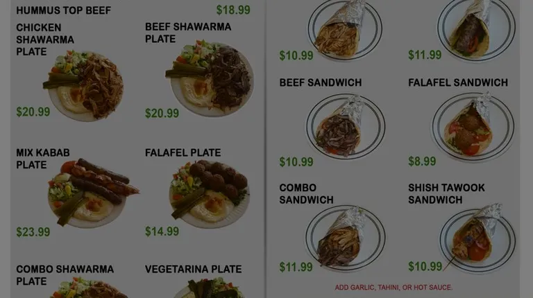 I was really looking forward to checking out this spot, but unfortunately, it didn't quite live up to expectations. We ordered the chicken shawarma and falafel platters. Both came with a side of hummus, salad, tahini, garlic sauce, hot sauce, and bread. The chicken shawarma came with rice as well. Sadly, the chicken shawarma lacked flavor--it felt pretty bland and didn't have the seasoning kick you expect from good shawarma. The falafel was better in terms of flavor, but it had been fried a bit too long, which made it greasy and hard. For the price, it didn't deliver what I was hoping for. It's located next to the Little Arabia shopping center and there are a couple of tables if you want to eat there.
