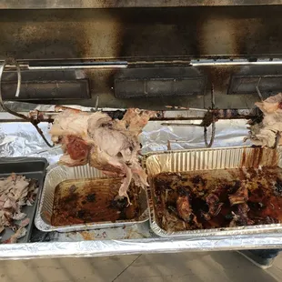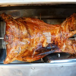 The whole pig at the start of the roast!