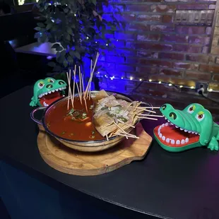 Last date night before the new year with my bf! We've seen this spot all over social media, so we wanted to try this place out.Parking: They have a compact parking lot, so finding a spot can either be a hit or miss.Ambiance/Environment: Such a fun spot to hangout with friends, play games, or simply enjoy drinks and food! They have plenty of indoor seating. No outdoor seating. It is dark inside with neon decor everywhere. They also have a photo booth and fun games. Service: There were only a couple workers that night. We didn't catch their names, but they were quick and efficient.Menu items:1) Bubble Smoke High Ball - I mainly came for the drinks lol! They're popularly known for their fun cocktails. I chose margarita. The bubble actually held while I took a video lol. If you're a lightweight, then this drink is perfect for you. It tasted like sprite with a hint of alcohol.2) Watermelon Popsicle Cocktail Soju - Now this drink was littt (literally). It came with a big watermelon popsicle and a lit rubber ducky. It's sweet yet strong! (I initially ordered the Watermelon Punch, but it was out of season)3) Volcano Beef Belly Stir Fried - Wow! They were not joking with the volcano part. This came with a generous amount of toppings and beef belly on an actual mini stir fry. The sauce was flavorful & spicyyy. Make sure to mix everything once it starts to heat up!4) Giant Chicken Tender with French fries & salad - Emphasis on giant. As good as it looks, the tenders were unfortunately too salty and chewy. The fries, salad, and sauces were delicious though. 5) Monster French Fries w/ Bulgogi - These were my favorite! There was a generous amount of meat, sauces, & toppings. Make sure to mix everything well!6) Ramen - These tasted as expected. It was also spicyyy. It may seem small, but don't underestimate its size.Activities: We played some board games and took photos. If you want to play any table games, you'd have to leave your ID with one of the workers. Free to play!Pricing: Everything was worth it! The vibes, cocktails, and food were amazing! Other than the chicken tenders, we'll be back for everything else!