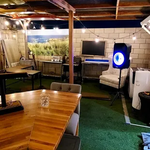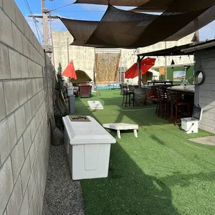 What a hidden gem in Costa Mesa!! If you are looking for an outdoor venue to throw a mid size family shindig, this place is for you. The owners are so accommodating. I would just advise against balloons.. the astroturf doesn't want balloons to stay and trying to hunt them down to clean is not worth it.Pro: outdoor space, lots of street parkingCons: balloons do not like it here