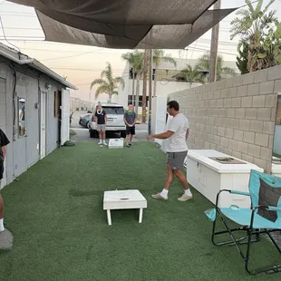 Ping pong, Slack line, and Corn hole game