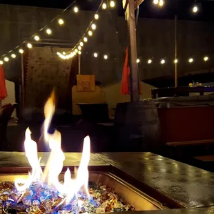 Propane fire pit is nice. Heats a large area