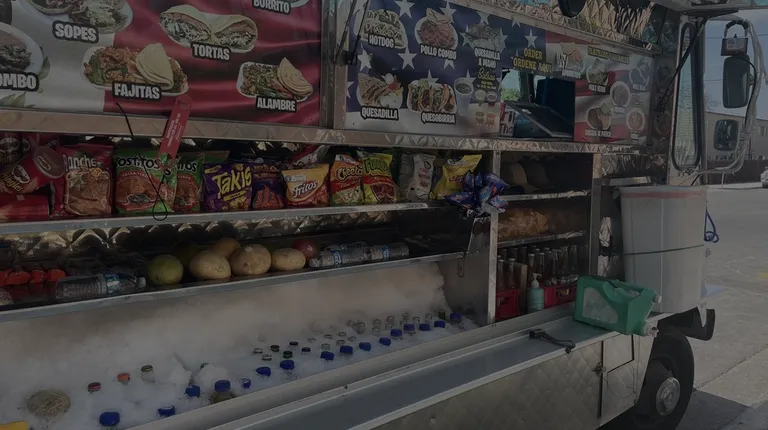 a taco truck parked in a parking lot