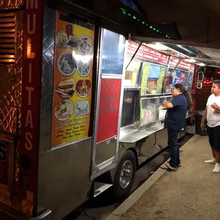 Taco truck at 11:45 am. Still warming up the grill and getting ready to serve lunch