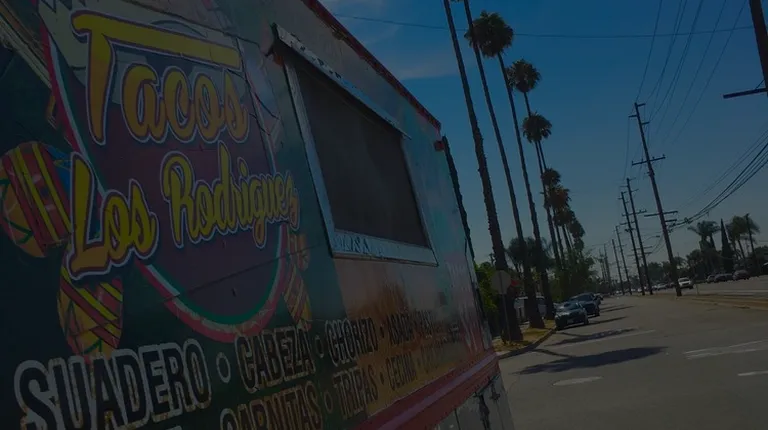 a taco truck parked on the side of the road
