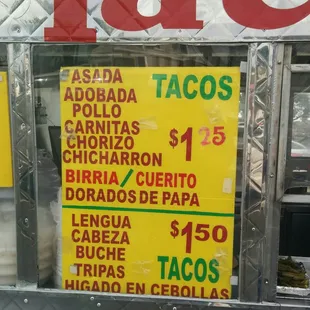 Tried the asada, adobada and the chorizo. The adobada was delicious, very flavorful made me very happy. But the other two were pretty mundane. Salsa, onions and cilantro made 'em better but the meat alone was a bit of a disappointment.I might be willing to go back but there's better places far closer to me.