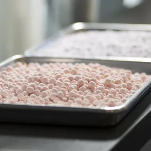 Uji Matcha Tea Latte with housemade strawberry boba