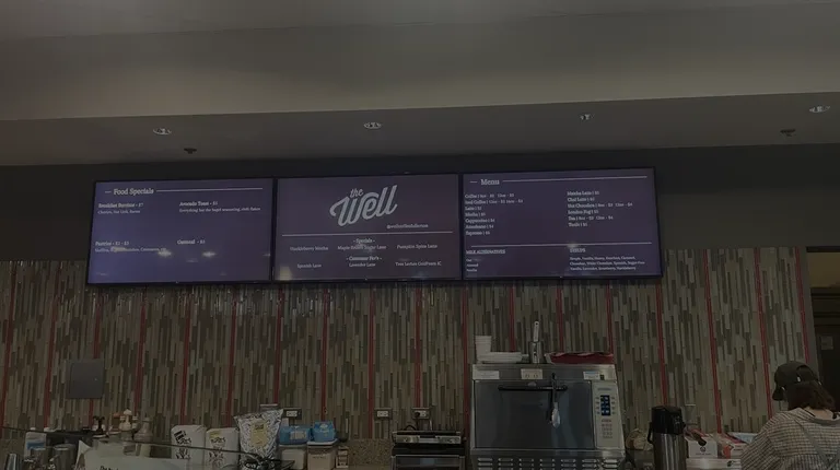 The Well has great drink selection with some food options. Located inside the campus of the church. Find the sign, you can miss it. Plenty of seating available inside. Item ordered was the green matcha. I thought it was good; my only complaint was it was still a bit warm when placed on ice. The staff was friendly and willing to answer and recommend any questions. Overall good options and plenty of space. They show mass on Sundays through the tv screens.