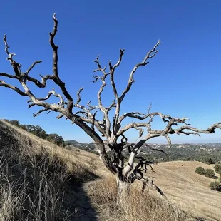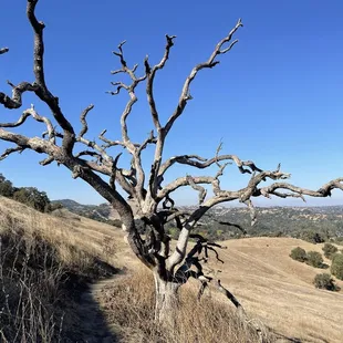 Are you looking for a short half-hour hike to spectacular views of Mount Diablo? Then Acalanes Ridge may be for you!I hiked the South Trail one sunny afternoon to see what I could see. Once I made it up the hill and emerged from the trees, I found myself on top of the ridge. At first, I could only see the mansions in the surrounding hills, but I was soon rewarded with beautiful views of the whole area as I continued on. From the ridge, I could see from Pleasant Hill all the way down to the Martinez refinery eight miles away on one side, and from Walnut Creek up to Mount Diablo on the other side.The biggest challenge with Acalanes Ridge is finding it (I used Google Maps to get there). The trailhead is tucked away in the hills above Walnut Creek, and there's very limited parking there. Put on sunscreen and bring water--the hills are a good workout and the trail is sunny once you leave the trees. Don't forget to stop and take in the views! If you're lucky, you might even sight a red-tailed hawk wheeling above.I enjoyed this hike and will have to try hiking it at sunrise next time.(Did you know? Before the days of radar navigation, airmail arrows used to be lit as beacons to guide pilots along the transcontinental airmail routes at night. The arrows on Acalanes Ridge are among the last remaining airmail arrows in the Bay Area.)
