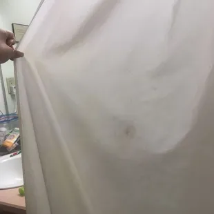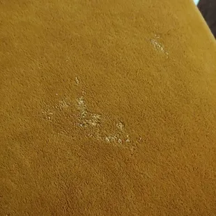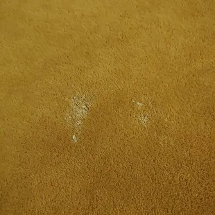 Cigarette burn in the carpet, next to the bed. It also smells terrible in here and I used to smoke!