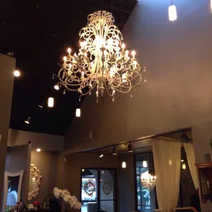 love the chandelier lights in the room. classy place!