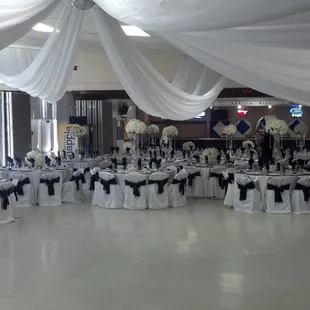 It's a good size hall but nothing much to it . But it dose have a lot of potential if you decorate it nice. Also has small bathrooms which could have been fixed up to make it look better. Overall it's was an okay experience