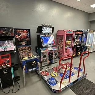 A variety of games, and some I haven't seen at other arcades really cool 10 dollars a person to play all day me and my kids had a lot of fun. They have street fighter and tekken tournaments come check this place out!!! I cool place in STOCKTON!!!!!