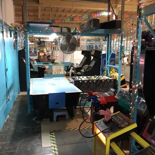 A variety of games, and some I haven't seen at other arcades really cool 10 dollars a person to play all day me and my kids had a lot of fun. They have street fighter and tekken tournaments come check this place out!!! I cool place in STOCKTON!!!!!