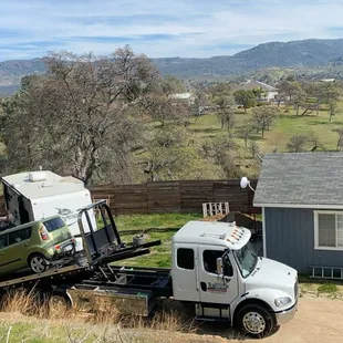 Driving home from a family camping trip, I had an axle mount break on my 30' travel trailer. Started with AAA - no help. Only covers the truck, not the trailer. Called 4 different tow companies only to be told that they couldn't help. Called the local RV repair shop and they recommended that I call Arrahien. After texting a couple of pictures, the guys knew exactly what to do. Showed up with the big rig truck, jacked up the rear axle, re-positioned the mount and secured the axle using a block of wood and a couple of chains. Got me to the RV repair shop without any problems. I was told that this would be a 2 hour minimum at $375 per hour since they had to bring the heavy wrecker. That seemed fair to me. By the time we were all done, it was 1 hour 55 minutes from when they arrived to when they dropped me off. No up charge. 2 guys were on the job, and they worked fast. Really professional, likeable, and knowledgeable. The guys even recommended a welding company down the road to help with the problem. While I hope to never need their services again, they'll be my first call if I do.Great job guys!