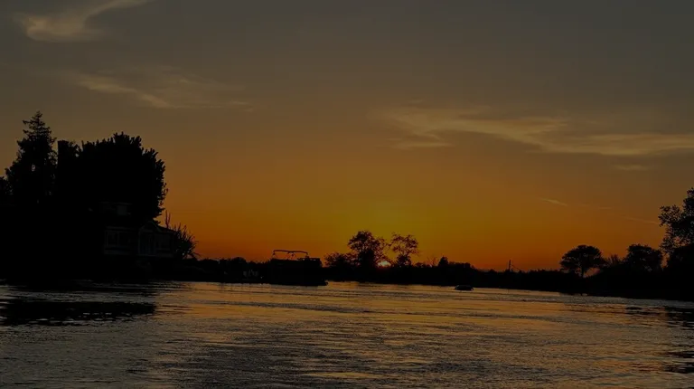 Sunset water sports on the smooth delta water.