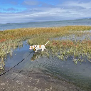They allow animals but you have to clean up after them , they give you bags there to do so. Don't see many animals when I do go but on occasions I do and I enjoy those times. So if you bring your dog here I will more than likely be saying hi to the little cutie if I'm there. Many places to go by the water if there's too many people on one patch of land. You never have to go far to find some more water here. There's a little canal type area that's now drying up!! Has a boat loading dock but it's no longer usable in this area , to be fair I'm not a boat expert but I don't think there's nowhere near enough water ( at least when I was there ) to get a boat going LOL.Always a great time when you go here. It's not much but me and my family used to always go here. Now that one of them is gone it's really a treasure to go here.So much walking space , I just took one of the many paths this time. So many seashells and other beachy stuff along the shore also. Family's always have a bunch of fun here even though there's no swimming allowed.Not many sea animals or anything that wash up thankfully! Means they are doing well :) !So many beautiful seashells and sand is everywhere. There is paved areas to walk on , however not every areas paved.Thanks for reading hope this helps !