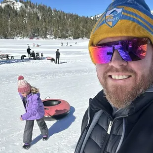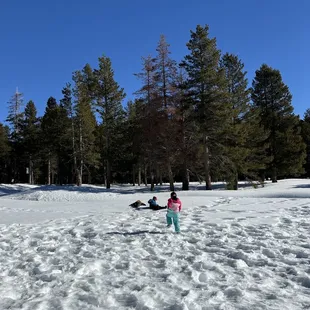 Great place to take the kids sledding one hour from Angels camp. Very close. Friendly staff nice sledding hills. Price is a little high but we had a lot of fun. We go every year and the kids love it. There are picnic tables and one outhouse restroom.