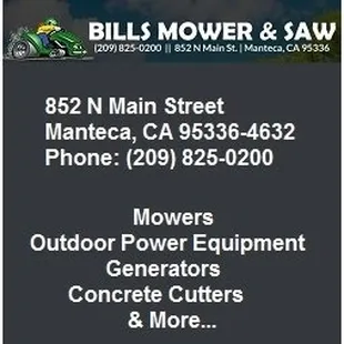 Bills Mower and Saw just continues to impress me with their knowledge, their customer service and their professionalism. I live in Stockton, and I always find that driving the distance to Bills, will save me money and time. I can't imagine taking my equipment to any other shop to have work done. I buy my saws thru Bills and for all my maintenance needs, they are the only shop I will deal with. Other shops have disappointed me too many times in the past, and Bills Mower and Saw has never disappointed me.