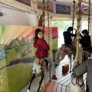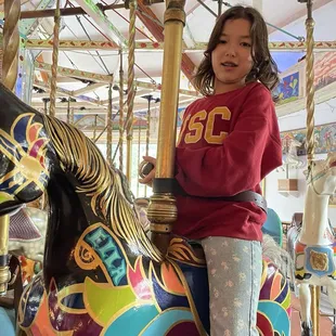 This review is primarily about the carousel. Anything else is tacked on at the end.A rare example of a clockwise merry-go-round in the US! All but about 4 of the horses look at home on it as well, with their manes, faces, and more detailed carvings ("romance side") facing outward to their left. So much attention to detail evident in this restoration, including names for every horse and paintings on the inside of the rounding boards. The horses are from 3 or 4 different makers but all seem to be antique, at least from the companies/carvers C.W. Parker, Lines Bros, and Dare. Circuse themed imagery is all over the carousel and inside the carousel house. The cherry on top is the replica Wurlitzer band organ, which tends to run on weekends and upon request! Not only does it work, but it has a wide variety of songs, from classics to popular 60s songs turned into organ music not found on any other antique carousel in the Bay Area. During summer break it is open every day of the week. The staff are friendly but may not know much about the history of the carousel.Meanwhile, the train area had knowledgeable operators that were happy to answer all sorts of questions and even tour the train building.Patrons with disabilities ride free on the train and the carousel, and you can ask for the wheelchair accessible train car. There is no ramp for the carousel, however. Decent amount of free street parking, and a paid parking lot.