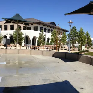 I've came here a few times. They have two play structures and water splash area. There's also a giant open grass area. This place is in the middle of down town so there's parking everywhere. Also a coffee shop right in front as well as a public library. The park is very clean and open highly recommend.