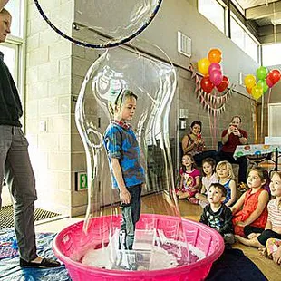 We had an amazing preschool presentation where our bubologist introduced the scientific method, and engaged the students in an interactive experience with bubble solution, standing in bubbles, supporting observation skills, and introducing new vocabulary. After the demonstration the children had the opportunity to make their own bubbles, and have experiences with the tools and materials they recently learned about. We will be having them back!