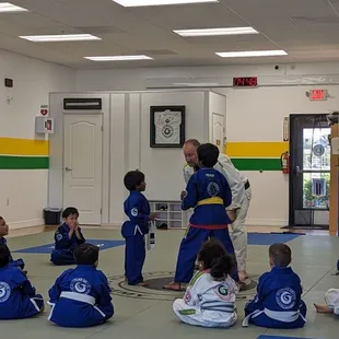 Coach Paul Instructing and leading some drills before sparring with the 4-6 year old class.