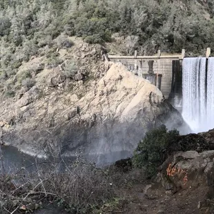 Great hike.Wear shoes you don't mind getting dirty or muddy.A shoe with a good grip sole would be great. Some narrow areas with rocks. Not recommend for small children.Pack water and snacks.Apx 4.5 miles round trip. No garbages or toilets- take out what you bring in. The view of the Dam is beautiful.Might even catch a rainbow at the bottom.There is a 10$ parking area before the bridge