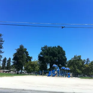 These reviews are not accurate. This is a of 7/18/23. I stopped by today and there's nothing but homeless people in the park bathing in the sprinklers and splash area. My daughter and I got out the car she wanted to take off her shoes and she touched the bench and it had all kinds of stains and fluids that I did not feel comfortable with. The play structure looked okay but all I could think of was the possibility of adult things that could've happened in and on the structure. Do not take your children here. Go to Donnelly just down the street and soak your children down with water guns. Safer, cleaner, better place to play.
