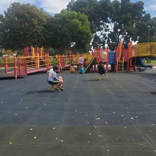 Really like this park. Meets my requirements: clean, lots of open space, walking trail, picnic benches, lots of beautiful trees, clean play structure for many ages, restrooms! Also has a tennis court if you're into that. Really nice playground.