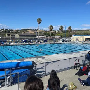 First, a large thank you to the residents who live around this pool because every bit of street parking was gone by 7:30am. And the streets are narrow. It took me 40 minutes to find a spot a quarter mile away and I was congratulated how lucky I was. At least all the parents seemed careful not to encroach on any driveways but still, the traffic! At the complex, there's only a small lot that accommodates about 20 cars, not even enough space for the judges and coaches. The pool is well maintained but the deck around it, small. Locker and restrooms are woefully lacking and old. I was grateful I didn't have to wait more than 10 minutes for one of three stalls in the ladies' restroom. Not my favorite competition spot.