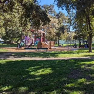 This a small little park in a nice area of Stockton. There is a play structure aka jungle gym so the little monsters can blow off steam. There are well maintained tennis courts also. It is not very big but the green and foliage is a nice respite in the neighborhood.