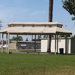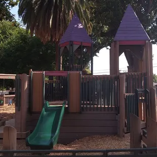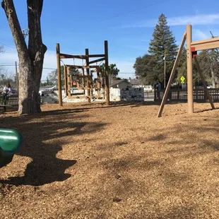 We were looking for a playground to give our 4 year old some opportunity to stretch his legs during our return home from Yosemite.This playground is large, shaded, and has slides, climbing structures and even a built in xylophone. One play area is suitable for preschoolers; the other larger structure could entertain kids up to 10ishShaded picnic tables and clean restrooms are available as well. Our son loved it here, and we appreciated the nap he took as soon as we got back in the car.