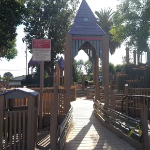 Great park. Creativity planned. Perfect for ages two and up. Maze like multilevel play structure, slides, swings, even a few balance features. It is fenced in well so kids don't "escape", with two different entrances. Bathrooms and some shade surrounding the play area. We stayed for almost two hours and my three year old cousin would have loved to play longer if we had more time. Very well refurbished park. I brought my own kids here years ago.