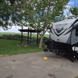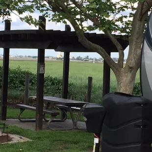 We found ourselves in need of a place to stay in our RV after I made a boneheaded navigation error that ended up 2 hours away from the campground where we had reservations. I googled and found Dos Reis RV campground, which is operated by San Joaquin County Parks & Recreation. It is about an hour from the interstate, out in the country and along the San Joaquin River levee. They have about 24 spaces, three of which are pull-thru sites. All sites have full hookups. They also have bathrooms & showers, though we didn't use them. There are a couple recently-renovated horseshoe pits. These are super nice, roomy, level sites and they all have wood fire pits, grills and a picnic table covered by a pergola. It is so serene at this park, most of it is surrounded by farm fields. We saw bunnies, squirrels, a few feral cats and we heard coyotes at night. You can walk up stairs to the levee where there are day-use picnic tables along the river. There is also a boat launch and dock. You can fish off the bank or the dock if you don't have a boat. We were pleasantly surprised at how nice the campground is. We called the SJPR office to pay for our site and the person on the phone was very friendly and helpful. The camp host came by to greet us, too. This is a great place for a stopover when traveling along I-5 near Lathrop and would be a nice destination campground for a little R&R. Only 25% of the sites were occupied during our two-night, mid week stay. Sites must be reserved in advance (we sent an email when we arrived because the office was open and called the next day to pay). You need to call the SJPR because we didn't see a way to book online, although there is an availability calendar online. RV camping costs $35/night.
