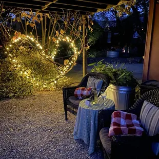 This place was rustic, with luxurious amenities, and just downright amazing. The property is so peaceful and pretty but still close (15 min) to the apple orchards, Main Street Placerville, the south fork River, and more. The owners are friendly, helpful, and great at communicating everything you need to know about your stay and then some. You even get a text in the morning when breakfast is on its way.For me, the highlight was relaxing on the grounds surrounded by gorgeous trees and plants, fun and eclectic yard decor (there are even some bowling balls on posts), water features and a pond with great clarity. The breakfasts were good and they had no problem accommodating your food preferences (vegetarian.) There is a designated parking spot for each room and a decent-sized overflow for a second vehicle, if needed. The property is rural but with lots of modern amenities. The fireplace comes on at the touch of a button as well as the outdoor tub. Privacy curtains surround your front porch so fear not the walk to and from the tub! There is even a "romance" button that dims the interior lights and kicks on the fireplace! So many well thought details.I can't wait to go back someday.We even saw a bobcat and a buck one day!