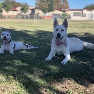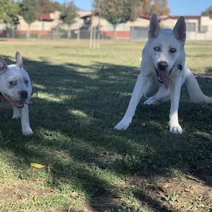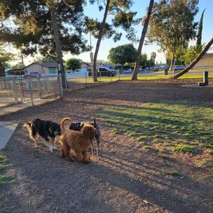 This is the one and ONLY dog park in Tracy! With so many people (100,000) and dogs, I can't wait until the new dog park opens on the south side of Tracy. I hear it's about a year out. This dog park is pretty good. It has a small side and a large side. The large side is definitely the popular side and there is a lot of rough housing so beware! My French Bulldog is still a puppy at 10 months so I only take him on the small side. It's pretty spacious and there are trees and a bench. I wish there was more seating. The water fountains are not automatic so you have to hold the button continuously or the water drains. There are poop bags and a nice receptacle. There is no public restroom. My dog Cooper loves to play with the other dogs:)