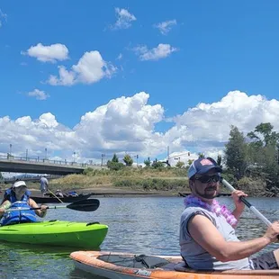 We rented a tandem kayak with a Groupon on our ten-year wedding anniversary. Our guide, Justin, was very responsive when making and confirming our reservation and greeted us with a warm Happy Anniversary on the morning of our kayak trip. He was very knowledgeable of the area, and pointed out facts about the wildlife we might see on our adventure. He recommended routes to take, gave us some info regarding the equipment, and sent us on our way. I appreciated his keeping an eye on us as we kayaked down the river for safety's sake, while also allowing us to have our romantic alone-time. The river was very serene, and we saw a wealth of different birds. Justin did point out some homeless setting up residence underneath one of the bridges, but assured us that they were harmless. We appreciated the reassurance. We would certainly rent kayaks from this company again!