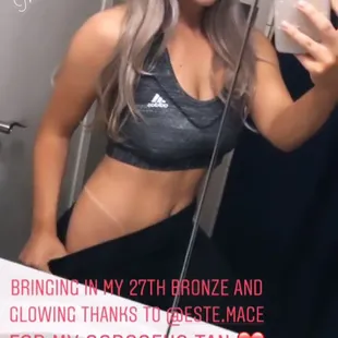Mace is a professional on all fronts & is extremely easy to be around. Her spray tans are next level & I loved how she added a lil bonus at the end too to make sure I wasn't feeling any sort of stickyness. I've gotten two spray tans from her now & will be back for more! Thank you Mace!!!