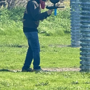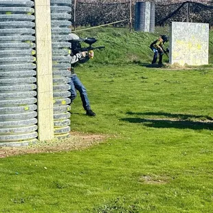 Fantastic first paintball experience via invitation to a birthday party! As we arrived and walked over to the area designated for the party, I happened to look over at the battlegrounds and could hear some of the rounds going off and became intimidated for my son, the invitee who would be partaking in these activities.He was soon suited up, someone explained the rules & safety, then off he went. The referee split them into teams, told them to take their positions, and after he counted down it was on. Exciting for him, nerve-racking for me!The open field area is quite large. It's grassy with mounds all about. There are dozens of wooden and what looked like steel barriers being used to hide behind and shield. Party area was neatly organized wooden benches under a pole and tarp kind of set up.The same booth where you sign waivers and get gear looked to also have snacks and drink for cheap. Didn't have to look far for the restroom area, there were a few porta potties a couple hundred feet from the picnic area which I didn't dare go near.On the day we came it was a bit warm so my son wore shorts and a t-shirt, but I'd recommend long pants and long sleeve shirt. All of the staff I encountered were very nice and accommodating, and besides one complaint about how heavy the paintball gun was my son had a blast with his friends.
