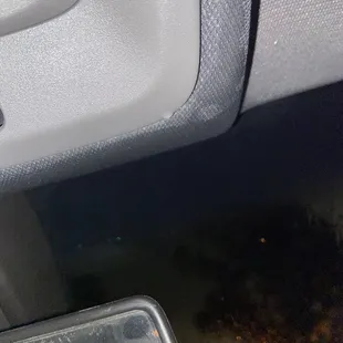 Leaking rain water from shark fin on roof into the cab.